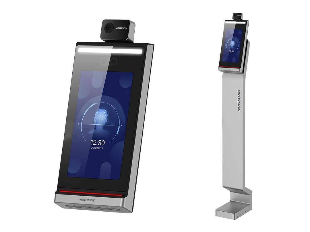 The facial recognition terminal is an access control device integrated with temperature screening. The terminal quickly measures the skin surface temperature and uploads data about abnormal temperatures to the center, and can also be used for video recording. Hikvision IP intercom video system.